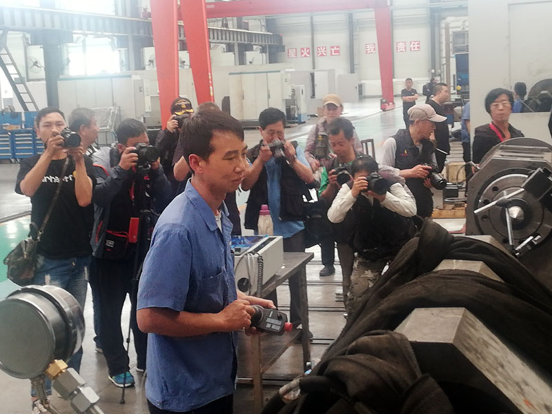 當天下午,50多名攝影愛好者一進入星火機床公司工業(yè)園裝配現場,便四處散開,各自尋找自己的拍攝對象。長槍短炮一齊上陣,記錄他們認為有價值的瞬間,攝影愛好者喜歡以藝術攝影的視角觀察日常工作生活,特別喜歡通過圓孔、圓洞等表現拍攝對象。在數控精密分廠現場,他們?yōu)榱送ㄟ^管子車主軸孔拍攝,幾十人排隊等候,現場一名員工為他們做了近30分鐘的“模特”,配合他們工作。同時,有許多攝影愛好甚至通過龍門吊的吊鉤、零件吊環(huán)進行拍攝,力求以獨特的視角,反映現實生活、反映星火風采。