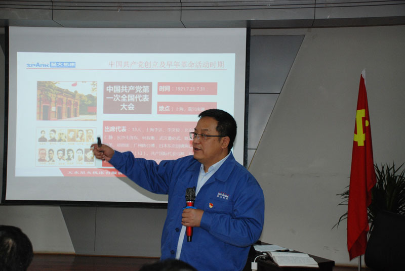 黨委書(shū)記、星火機(jī)床集團(tuán)公司董事長(zhǎng)蔣保權(quán)為與會(huì)人員作了專(zhuān)題黨課輔導(dǎo)。蔣保權(quán)從人類(lèi)歷史發(fā)展進(jìn)步、中國(guó)共產(chǎn)黨誕生前的歷史背景、中國(guó)共產(chǎn)黨發(fā)展壯大的歷史,以及各個(gè)時(shí)期黨經(jīng)受的考驗(yàn)和歷史轉(zhuǎn)折關(guān)頭領(lǐng)導(dǎo)全國(guó)各族人民不斷堅(jiān)定信仰、明確目標(biāo),從勝利走向勝利的光輝歷程。蔣保權(quán)指出,每個(gè)黨員都要了解黨的光輝歷史,提高修養(yǎng),嚴(yán)格用黨員標(biāo)準(zhǔn)規(guī)范自己言行,發(fā)揮好模范帶頭作用,堅(jiān)信只有共產(chǎn)黨才能救中國(guó),只有共產(chǎn)黨才能領(lǐng)導(dǎo)中國(guó)革命從勝利走向勝利,最終實(shí)現(xiàn)為中國(guó)人民謀幸福,為中華民族謀復(fù)興的中國(guó)夢(mèng)。