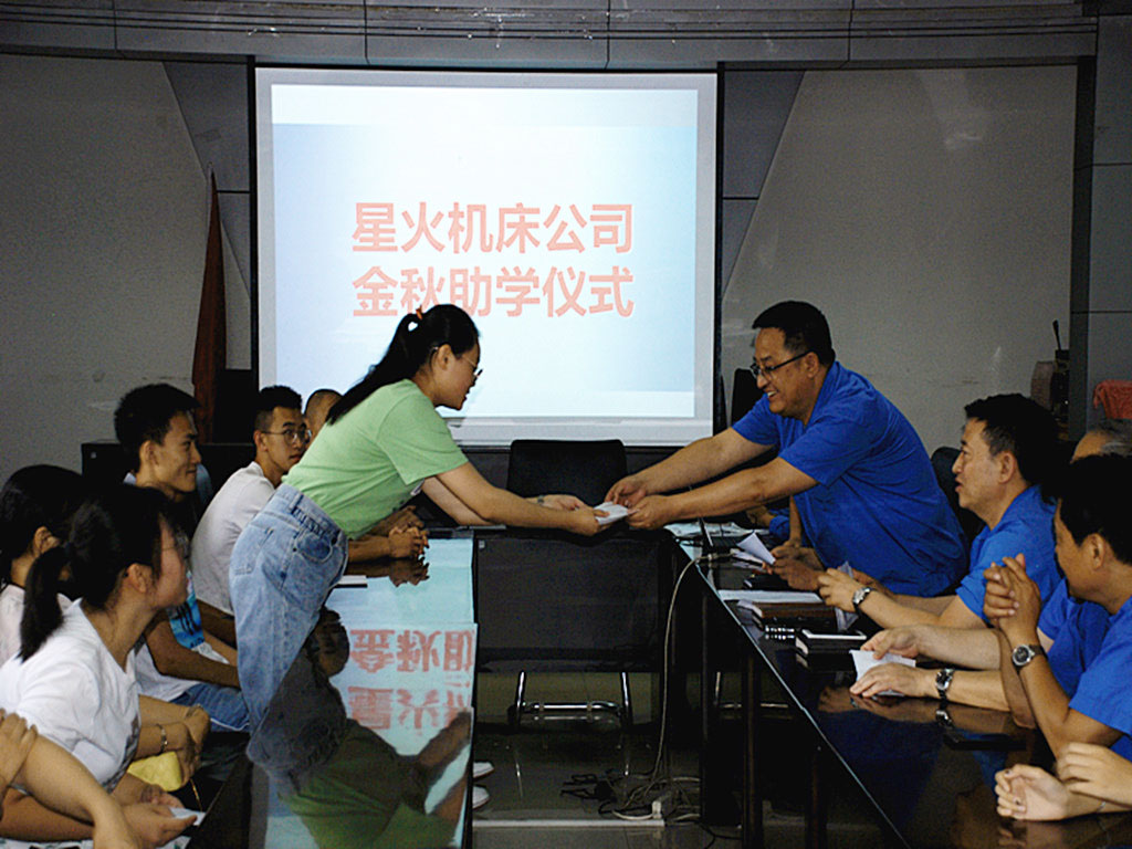 之后,星火機床集團公司領導蔣保權、劉勝、趙錦銘現(xiàn)場為18位中榜學子發(fā)放了助學金。