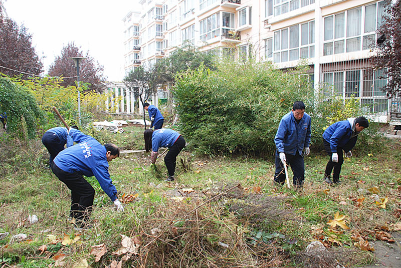下午 2點(diǎn)一上班,參加學(xué)雷鋒義務(wù)勞動(dòng)的10個(gè)黨支部的60多名黨員在生活區(qū)球場(chǎng)集中,黨委工作部部長(zhǎng)姚保忠安排了此次主題教育的規(guī)定動(dòng)作——學(xué)雷鋒志愿活動(dòng)。物業(yè)公司經(jīng)理張巨宏首先強(qiáng)調(diào)了參加義務(wù)勞動(dòng)的安全注意事項(xiàng),并根據(jù)不同區(qū)域的工作量,分配了具體任務(wù)。黨員學(xué)雷鋒義務(wù)勞動(dòng)主要為清理5#樓——9#樓周邊垃圾、雜草、樹(shù)葉,打掃衛(wèi)生以及清理5#—9#樓各樓道內(nèi)的垃圾,保證消防通道暢通。各組領(lǐng)受任務(wù)之后,立即分頭行動(dòng),大家有的拿鐵鍬,有的拿掃把,有的割草、有的揀垃圾,干的熱火朝天。剛出差回來(lái)的黨委副書(shū)記蔣俊也參加到義務(wù)勞動(dòng)的行列,清理雜草、樹(shù)枝、垃圾,有的同志沒(méi)有工具就用手揀垃圾。姚保忠、張巨宏一邊協(xié)調(diào)聯(lián)系垃圾清運(yùn)車輛,一邊參加義務(wù)勞動(dòng)。有的支部書(shū)記親自帶隊(duì)參加,有的支部因工作任務(wù)只有部分黨員參加,但大家都干的非常認(rèn)真。到下午4點(diǎn)鐘,有的支部負(fù)責(zé)的區(qū)域衛(wèi)生已經(jīng)打掃完畢,就主動(dòng)幫助其他同志,有的則到指定區(qū)域外清理垃圾。有的職工家屬看黨員干的滿頭大汗說(shuō):還是黨員好!