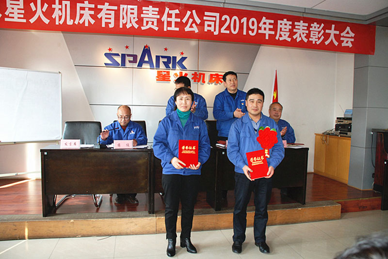 星火機(jī)床集團(tuán)公司總經(jīng)理劉勝宣讀了《關(guān)于表彰2019年度先進(jìn)集體和先進(jìn)個人的決定》;集團(tuán)公司副總經(jīng)理、星火公司總經(jīng)理趙錦銘宣讀了《關(guān)于QC成果表彰獎勵的決定》。大件加工分廠、公司工會榮獲先進(jìn)集體稱號;數(shù)控精度班組、鑄木造型班組、部件加工車工段、大裝精度(80)班組榮獲先進(jìn)班組稱號。杜治軍、張志鴻、馬愛來等34位同志榮獲先進(jìn)個人稱號,受到表彰獎勵。先進(jìn)集體代表和先進(jìn)個人胸佩紅花,依次登臺領(lǐng)獎。