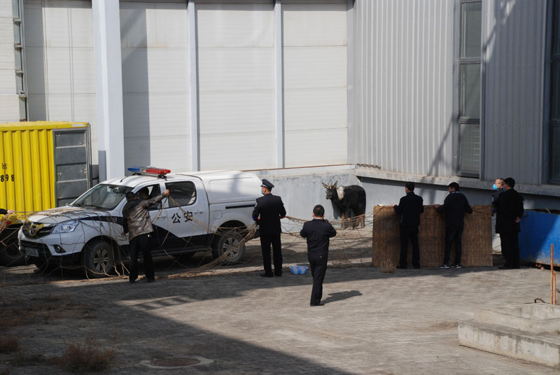 得知情況后,星火機床公司立即報告相關(guān)管理部門。甘肅省小隴山林區(qū)森林公安局接警后,派森林警察迅速來到星火工業(yè)園。經(jīng)確認,他們決定將其送往附近的林區(qū)。可是,由于天已黑,鬣羚產(chǎn)生了恐慌情緒,出現(xiàn)了攻擊人的行為。出于安全考慮,他們只好決定第二天再采取行動。為了做到既不傷害人,又能夠保護野生動物,星火機床公司安排人將鬣羚引導到兩個分廠之間的空地,關(guān)閉了前后大門,為其準備了水和草料,將其妥善安置。