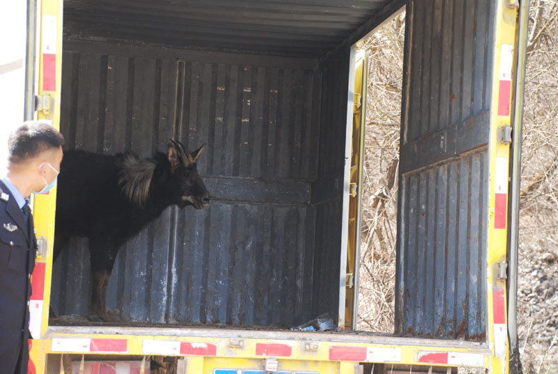 3月18日上午,甘肅省小隴山林區(qū)森林公安局會同天水市森林公安局麥積分局及麥積區(qū)林草局相關(guān)人員來到星火機床公司工業(yè)園,經(jīng)反復研究,確定了捕捉方案。由于鬣羚體積大、爆發(fā)力強,致使人無法靠近,抓獲過程比較困難。后經(jīng)近一個小時的努力,最終在星火機床公司全力配合下,費盡幾番周折,終于將“倔強”的鬣羚裝上了車。在充分考慮生存環(huán)境的適應(yīng)性后,森林警察將鬣羚放歸到了遠離人群的麥積區(qū)草灘村管嶺溝附近的山林。