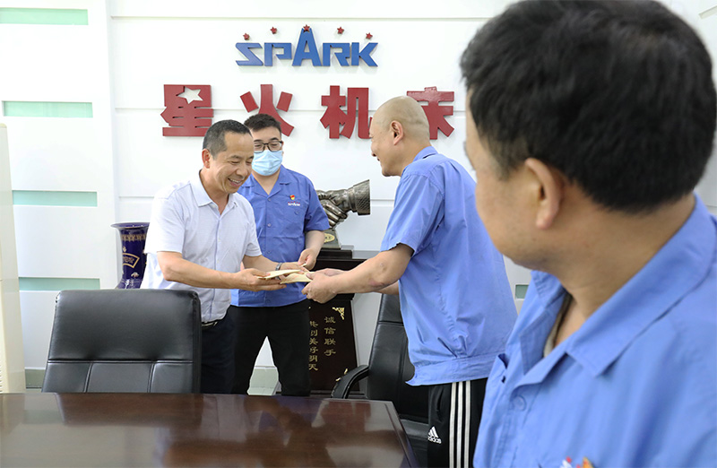 蔣俊代表星火機(jī)床公司黨委對(duì)市國資委領(lǐng)導(dǎo)來公司送溫暖、慰問生產(chǎn)一線黨員表示感謝。他說,我們將教育黨員干部不忘初心、牢記使命,以實(shí)際行動(dòng)向建黨100周年獻(xiàn)禮,以實(shí)際行動(dòng)回報(bào)市委、市國資委、企業(yè)工委的關(guān)心。
