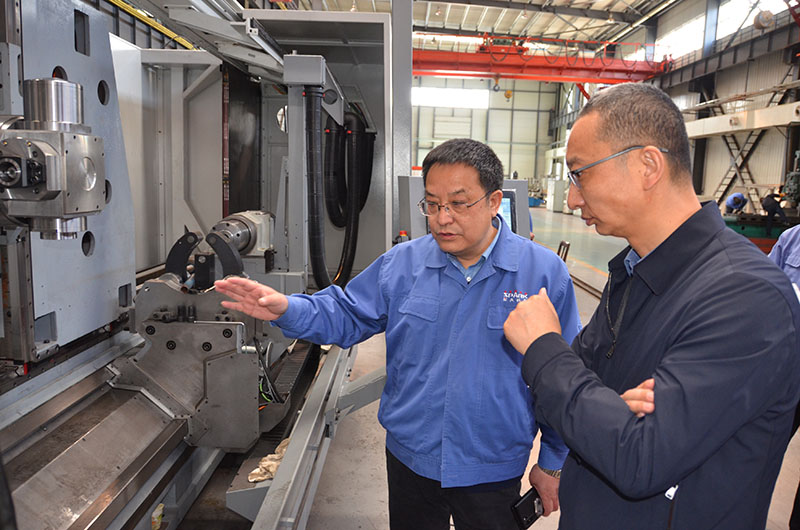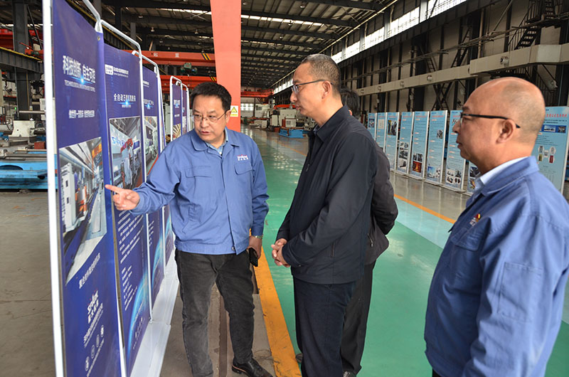 星火機床集團公司黨委書記、董事長蔣保權,黨委副書記、副總經理蔣俊陪同參觀生產現場,匯報工作。