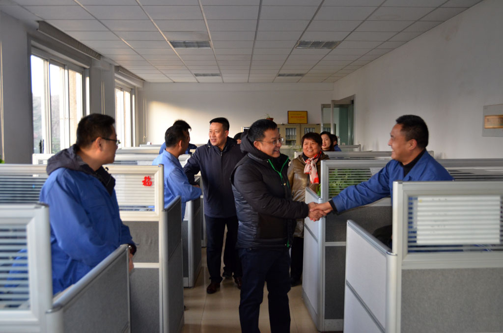 8點(diǎn)上班,公司領(lǐng)導(dǎo)蔣保權(quán)一行又前往各生產(chǎn)車(chē)間及部門(mén),向辛勤耕耘的職工同志們拜年。每到一處,蔣保權(quán)、劉勝等都親切地與職工交談,了解節(jié)日出行、家人身體健康等情況,向他們送去新春的祝福。一聲聲關(guān)切的問(wèn)候,一句句真誠(chéng)的祝福,讓節(jié)后第一天上班的職工感受到公司濃濃的關(guān)愛(ài)和溫情。