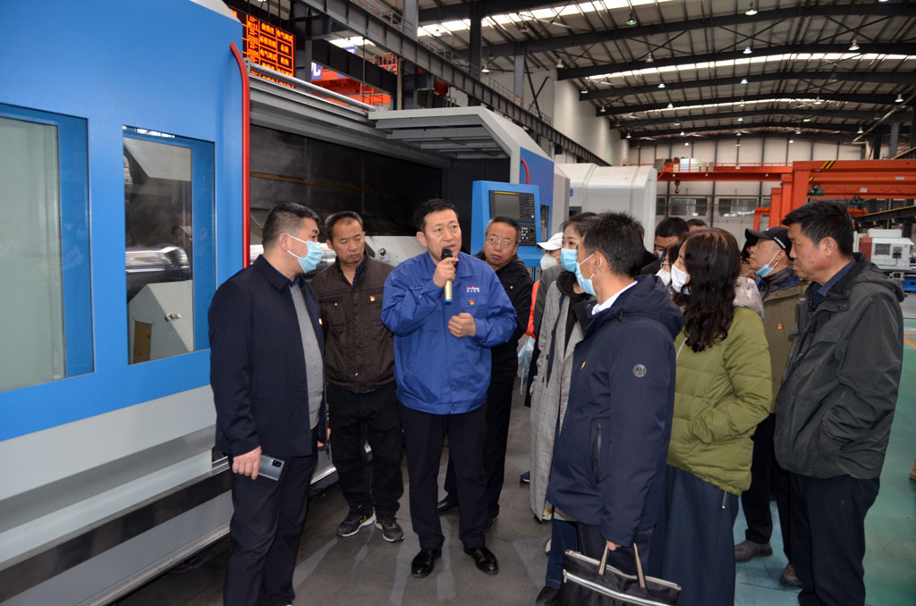 星火機(jī)床集團(tuán)公司總經(jīng)理劉勝,副總經(jīng)理趙錦銘等陪同參觀生產(chǎn)現(xiàn)場,介紹公司生產(chǎn)經(jīng)營和科技創(chuàng)新成果。