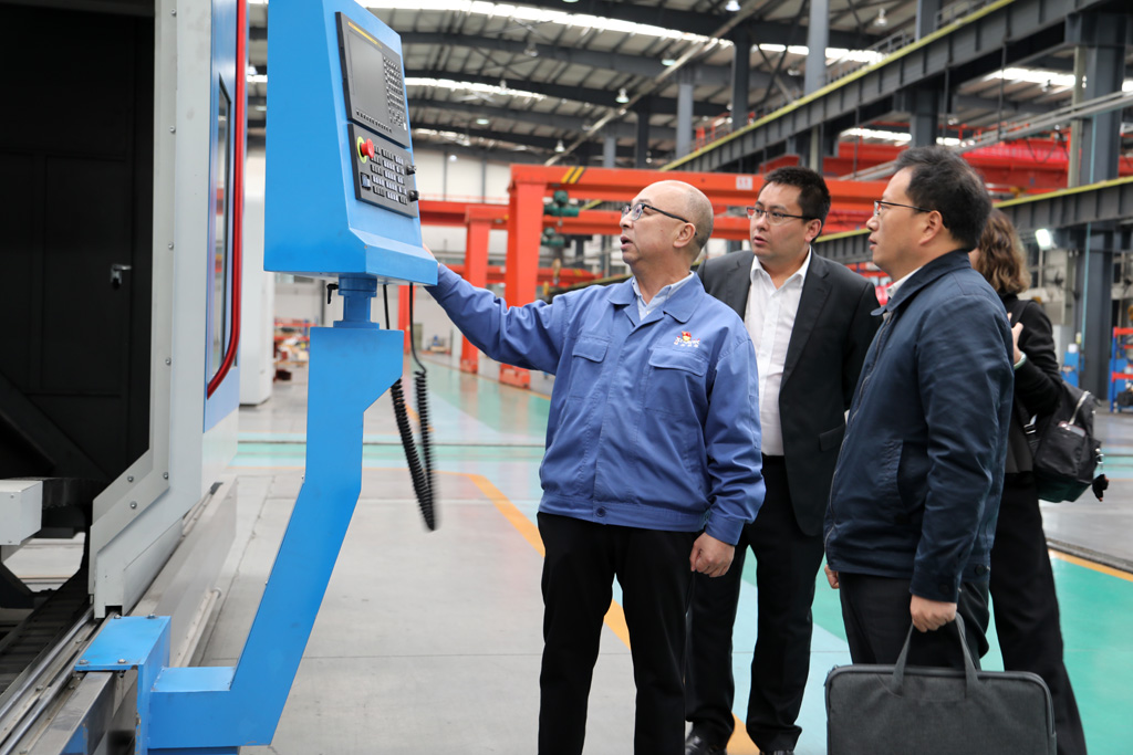 楊治國(guó)一行在星火機(jī)床集團(tuán)公司黨委副書(shū)記、副總經(jīng)理蔣俊,財(cái)務(wù)金融部部長(zhǎng)武海軍陪同下參觀了公司生產(chǎn)現(xiàn)場(chǎng)。蔣俊向楊治國(guó)一行介紹了公司的歷史沿革、當(dāng)前生產(chǎn)經(jīng)營(yíng)狀況,產(chǎn)品市場(chǎng)前景,以及公司已經(jīng)掌握的五軸聯(lián)動(dòng)數(shù)控機(jī)床、多軸聯(lián)動(dòng)數(shù)控纏繞機(jī)床等技術(shù)。