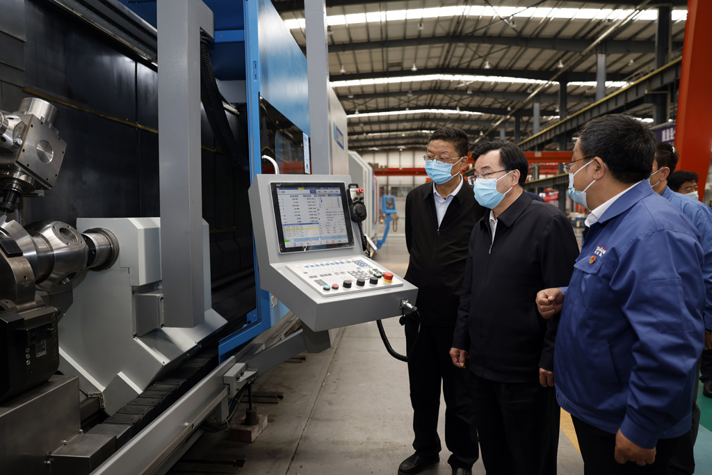 調(diào)研結(jié)束時(shí),胡書記發(fā)表了重要講話,他指出:“這個(gè)企業(yè)很有前景,體現(xiàn)在幾個(gè)方面,一是在不斷的創(chuàng)新,實(shí)現(xiàn)了專精特新,是正兒八經(jīng)的專精特新企業(yè)。沒想到天水還有這樣的企業(yè),有創(chuàng)新能力,企業(yè)發(fā)展勢頭也很好。我也看過很多機(jī)床企業(yè),你們做的很好,有自己的特點(diǎn)。你們研發(fā)的復(fù)合材料纏繞設(shè)備,制造的超長、直徑超大重型機(jī)床,聯(lián)合北京郵電學(xué)院、武船等單位和自己的制造優(yōu)勢結(jié)合起來,解決了“卡脖子”問題,而且今后的需求量會很大,為國家服務(wù),國之大者要點(diǎn)贊。要發(fā)揮這些優(yōu)點(diǎn),要繼續(xù)創(chuàng)新,要善于將別人的優(yōu)勢和自身優(yōu)勢巧妙結(jié)合起來,把別人的長處變成自己的長處,提升企業(yè)的綜合實(shí)力?!?