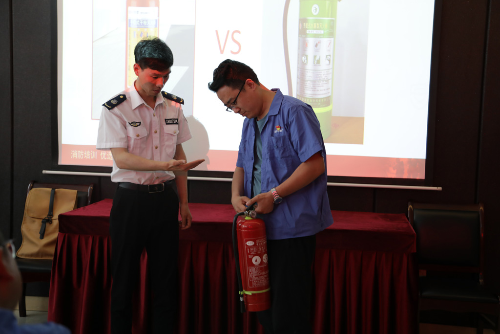 隨后,在閆文軍的專業指導下,大家有序進行了現場應急滅火演練,通過“實戰”全面掌握了滅火器和消防水帶的正確使用方法。
