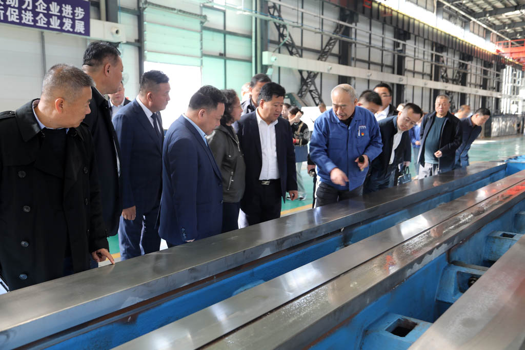 郝效冬一行深入公司裝配生產(chǎn)現(xiàn)場,詳細了解了公司歷史沿革、基本情況、產(chǎn)品研發(fā)、項目建設等情況,并參觀了公司自主研發(fā)生產(chǎn)的萬能軋輥磨床、五軸聯(lián)動機床、復合材料纏繞機床、重型臥式車床等產(chǎn)品。