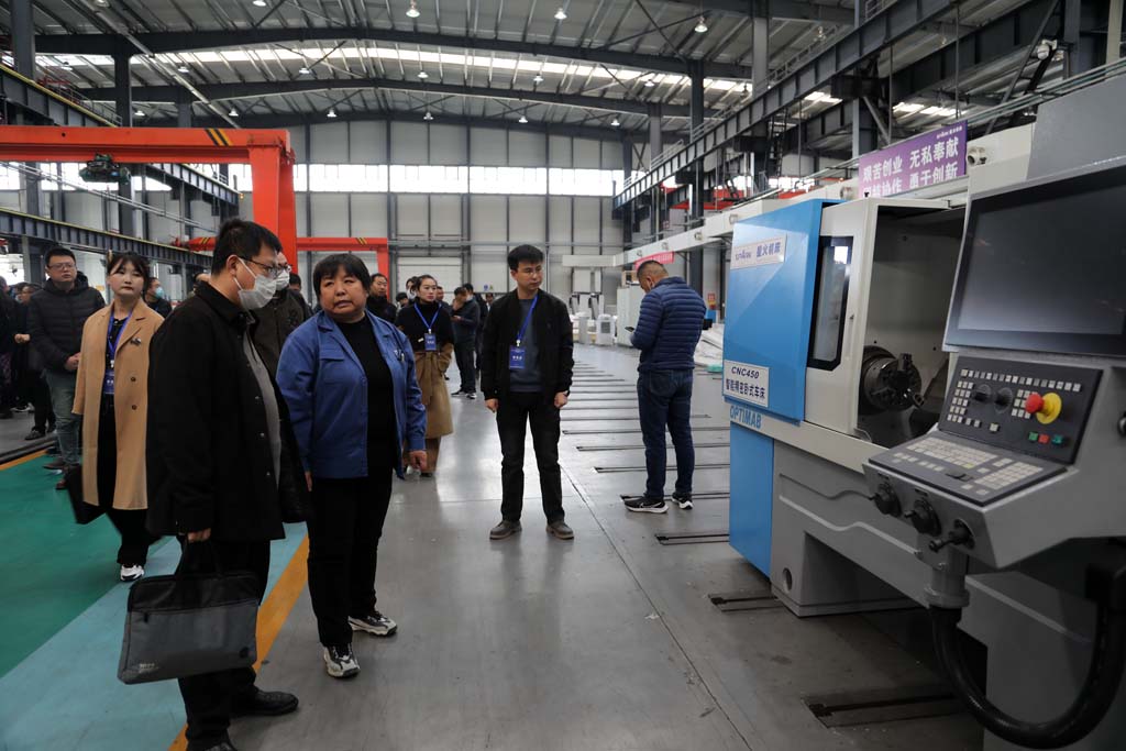 楊金明一行先后參觀了公司數控裝配現場、公司展廳和青海重型裝配現場,通過實地參觀、聽取介紹、座談交流,詳細了解企業生產運營、人才引進、人才培育、招聘招工等情況。