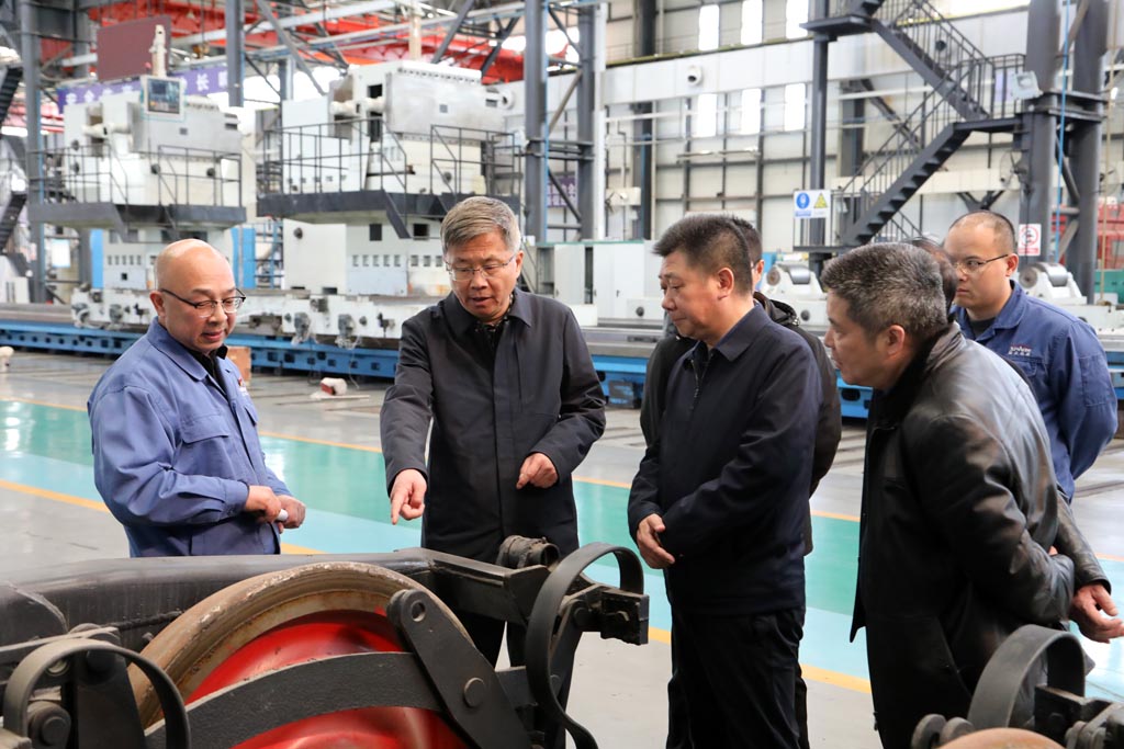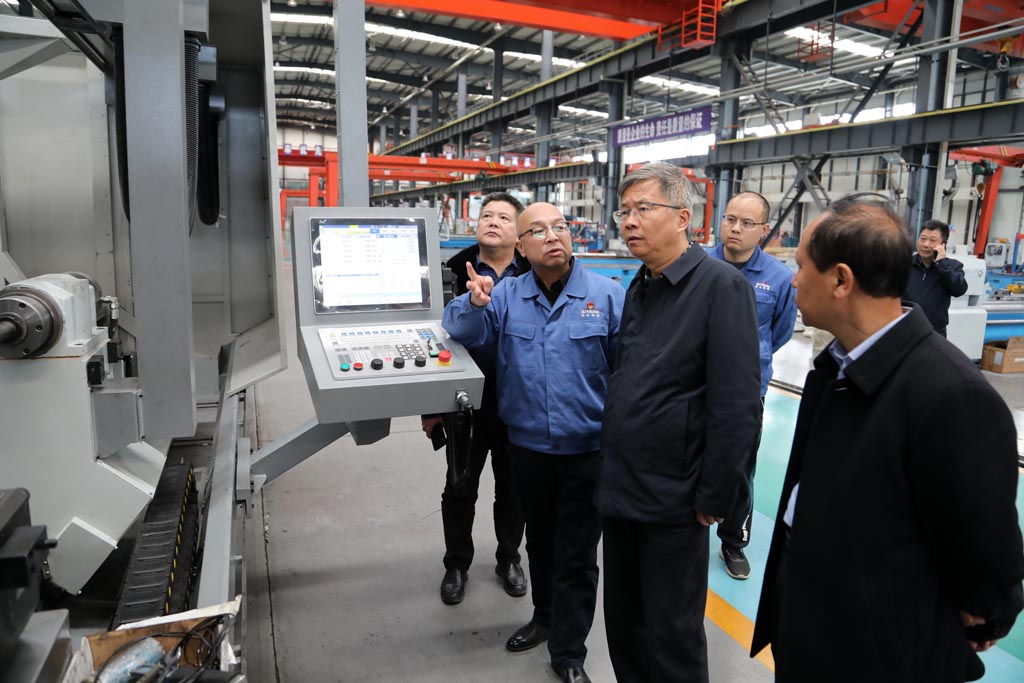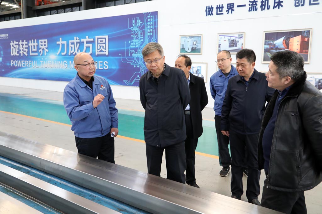 蔣俊、展海瑜陪同李斌一行首先深入工業(yè)園裝配現(xiàn)場,參觀了星火機(jī)床公司研發(fā)生產(chǎn)的大型數(shù)控機(jī)床、重型機(jī)床及星火青重公司生產(chǎn)的車輪車床等產(chǎn)品,介紹了各種機(jī)床產(chǎn)品的特點(diǎn)、用途和市場前景。隨后,前往加工車間參觀了公司主要生產(chǎn)設(shè)備。調(diào)研中,蔣俊匯報(bào)了企業(yè)近幾年的生產(chǎn)經(jīng)營指標(biāo)、今年計(jì)劃、科技創(chuàng)新、改革改制和未來發(fā)展規(guī)劃等。
