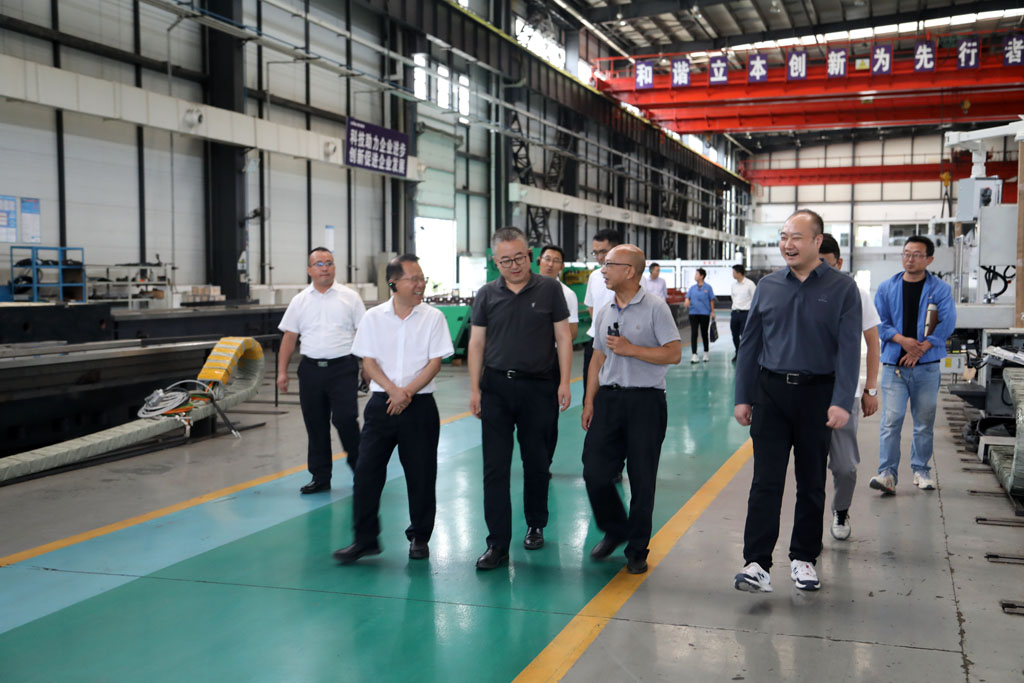 甘肅星火智能數控機床有限公司黨委副書記、工會主席蔣俊接待調研組一行并陪同參觀了生產現場。