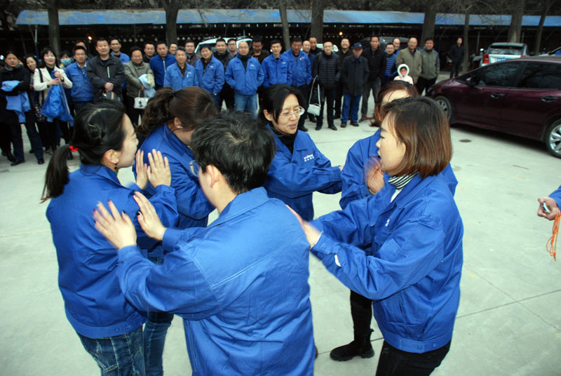 工會副主席蔡建欣向大家致以節(jié)日的問候,并講解了游戲規(guī)則。此游戲6人一組,腳對腳站成一個圓圈,裁判員宣布開始,隊員首先拍手一下喊“1”,之后在左右隊員肩膀上分別拍一下,喊“星、星”,然后拍手兩下喊“1、2”,在左右隊員肩膀上分別拍兩下,喊“星火、星火”,以此類推,最后拍六下喊“1、2、3、4、5、6”,在左右隊員肩膀上分別拍六下,喊“星火是最棒的、星火是最棒的”,以勝利手式“耶”結(jié)束,比賽過程中如有隊員喊錯或動作與他人不一致,出錯一次在時間上加1鈔,每隊最終成績以速度最快、用時最短排名。