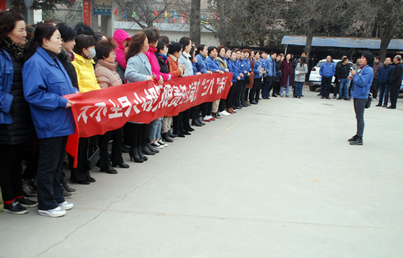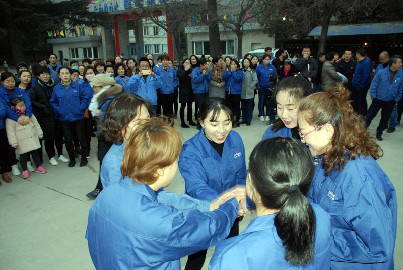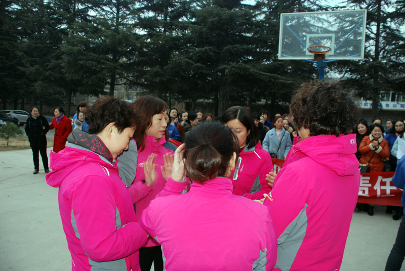 下午6點下班,籃球場上笑聲陣陣、喜氣洋洋,參加活動的女職工近200人按組別整齊的排列,印有“星火機(jī)床慶祝三八活動”的鮮紅條幅映襯的她們格外亮麗、精神,尤其是星火職工醫(yī)院代表隊,身著統(tǒng)一的紅色運(yùn)動服,顯得格外耀眼。星火集團(tuán)公司黨委副書記、副總經(jīng)理、工會主席蔣俊來到活動現(xiàn)場,參觀比賽。